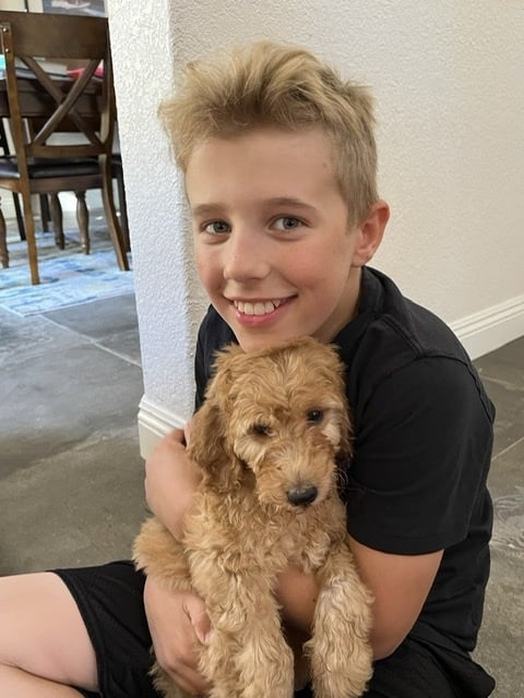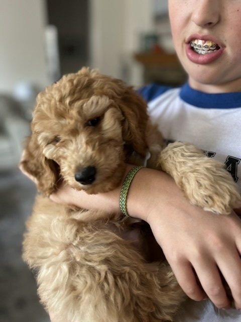 Big news: after many, many years of begging by our kids, we finally got a puppy. Meet Dave. He’s a golden doodle, 75% poodle and 25% golden retriever, and the kids are 100% in love. He’s nine weeks old and he is very sweet, gentle, and docile.