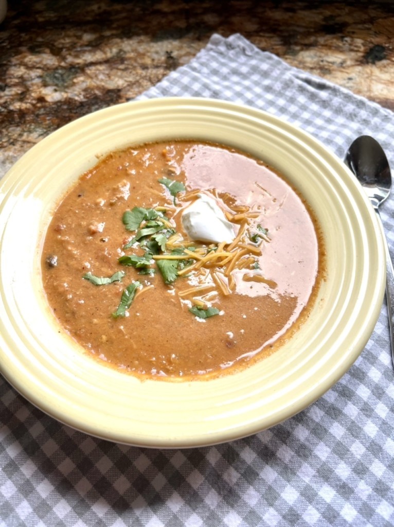 - Serve with chopped fresh cilantroo, shredded cheese, and sour cream.