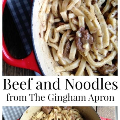 And speaking of Grandma Betty, I serve beef and noodles piled high on top of mashed potatoes. My favorite mashed potatoes are these: Grandma Betty’s Make Ahead Mashed Potatoes.