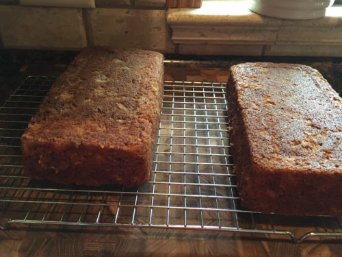 - Bake 1 hour or until toothpick inserted in center comes out clean. Cool 10 minutes. Loosen sides of loaves from pans and remove to cooling rack. Cool about 1 hour before sliceing. Serve with butter.