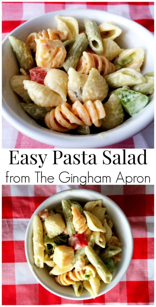 This Easy Pasta Salad is popular in our house. I first had it at a BBQ at my parent’s house and when I asked for the recipe I see it came from my cousin’s wife. It sure is fun to have such good cooks in the family. It makes for not only enjoyable gatherings, but delicious ones. 🙂