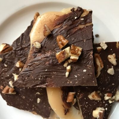 - Spread the melted chocolate chips with an offset spatula and sprinkle with chopped pecans. Let the toffee cool completely, then break into pieces and enjoy.