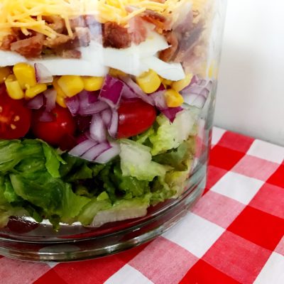 Recipe by The Gingham Apron at https://www.theginghamapron.com/7-layer-cobb-salad/