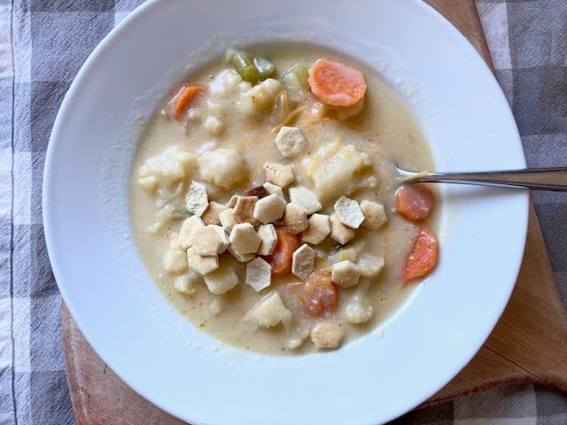 Recipe by The Gingham Apron at https://www.theginghamapron.com/roasted-cauliflower-chowder/