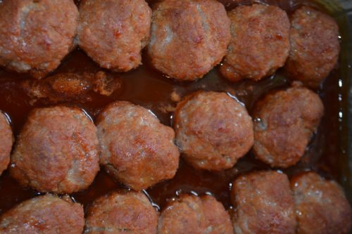 - Mix sauce ingredients together with whisk and pour over the balls.