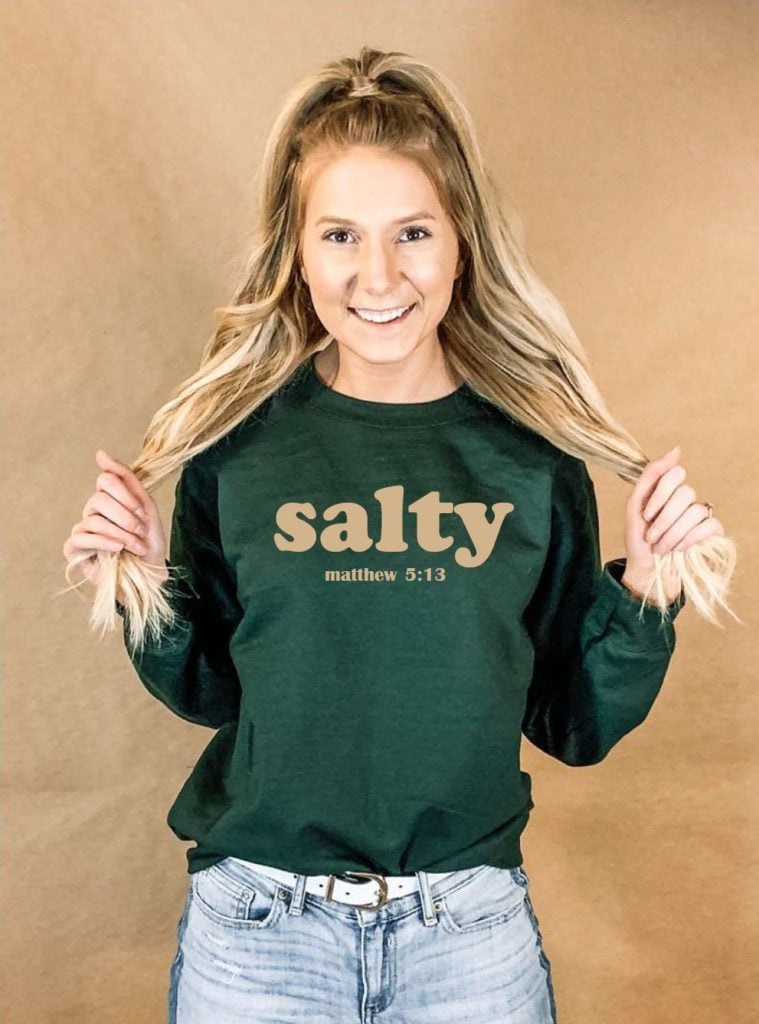 The design that caught my eye was “salty”, it’s a little bit edgy and different than the normal Christian t-shirt. I think it could start a conversation.