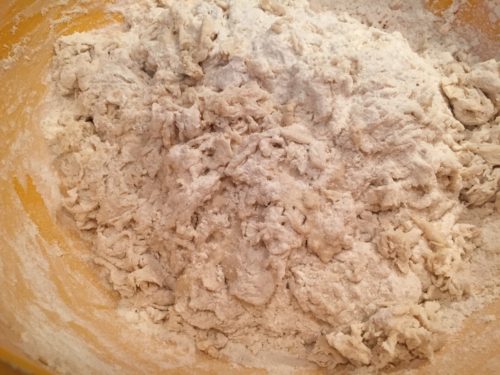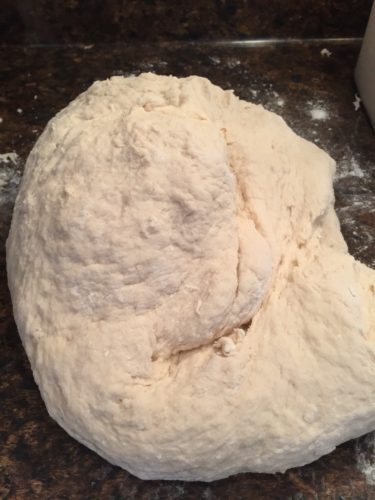 - Turn dough onto lightly floured board; knead until smooth and elastic, about 10 minutes. Place in greased bowl, grease top and cover. Set in warm place.Let rise about an hour. Dough is ready if impression remains.