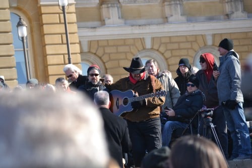 We bundled up and arrived a little early. People were gathering from every direction and began their climb upwards to the capitol steps. It didn’t look like a lot of people at first, but as we walked and stood facing our beautiful gold-leafed trimmed building, we saw people praying, waving flags and solemnly, quietly gathering together for prayer.