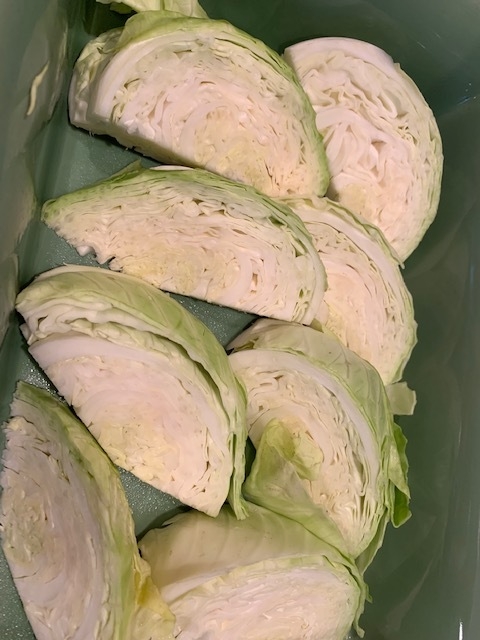 - 1 head cabbage cut into 8 wedges. Cut out core.