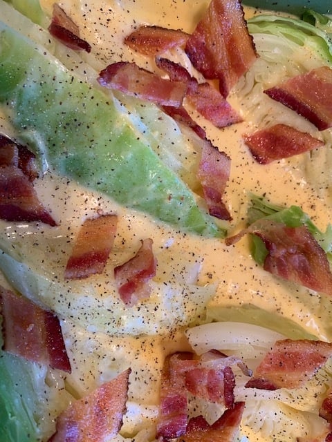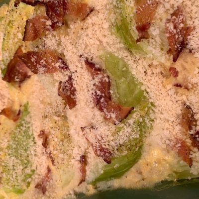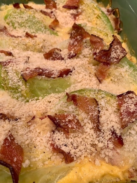 - Pour sauce over cabbage. Sprinkle with Panko bread crumbs and bacon. Bake for 30-40 min.
