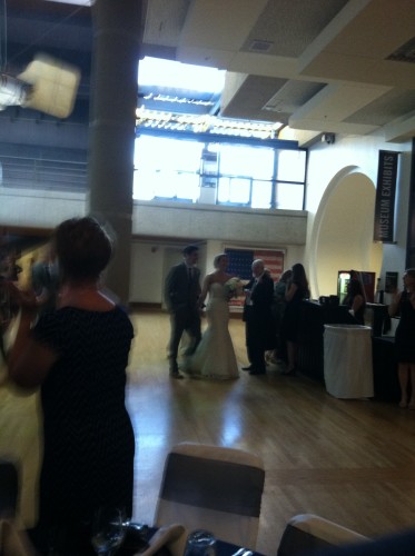 And speaking of my uncle…..well…..he got to see his grandson get married this weekend in Des Moines! We were there, too, and it was truly a grand wedding. The reception was at the Historical Building with the hors devores’ being served out on the magnificent terrace. The ballroom was spectacular. I snapped fuzzy photo of my Uncle visiting with his grandson, the groom, and his beautiful new bride. How fun it was to witness the marriage of these young lovebirds and see many generations of family. Loved spending time with some cousins and seeing Uncle Glen and Aunt Roma and all the Bassett clan. How blessed we are to have a supportive, loving family…..God’s design. I’m thankful, Heavenly Father!