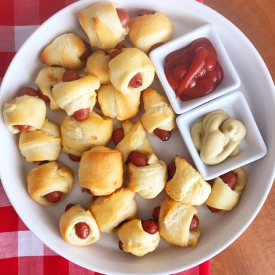 A two ingredient appetizer that pleases both kids and adults alike? Sign me up! This pigs in a blanket recipe is nothing new..it’s been around as long as I can recall. However, this time of year between busy schedules and football games this is a dish I reach for. Sometimes it’s an appetizer, sometimes it’s the main attraction at dinner.