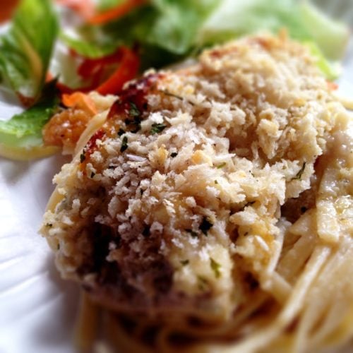 - Bake in oven for approximately 45 minutes, until meat thermometer reads 165 degrees and bread crumbs start to brown.