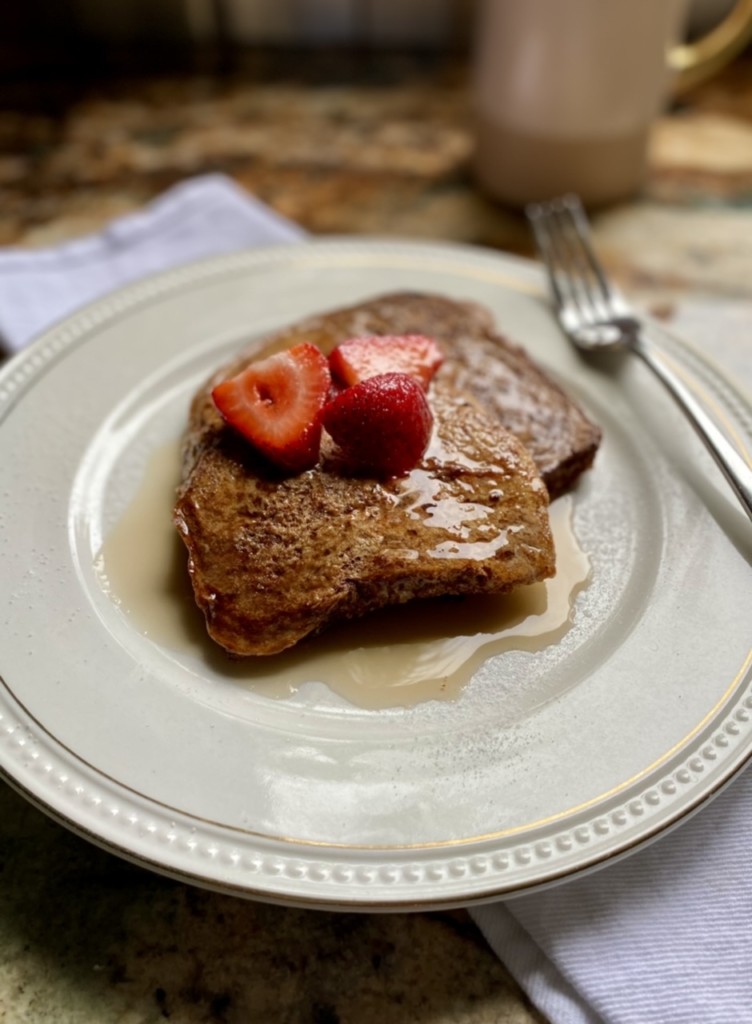What are you doing lately to calm your soul and mind? Do you, like us, love comfort food? I hope you’ll make this healthy French toast. I think you’ll love it!