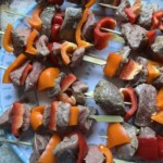 Make your kabobs by thredding the beef and peppers onto skewers. Tip: if using wooden skewers, soak them in water for an hour before making the kabobs so that they won't burn on the grill.
