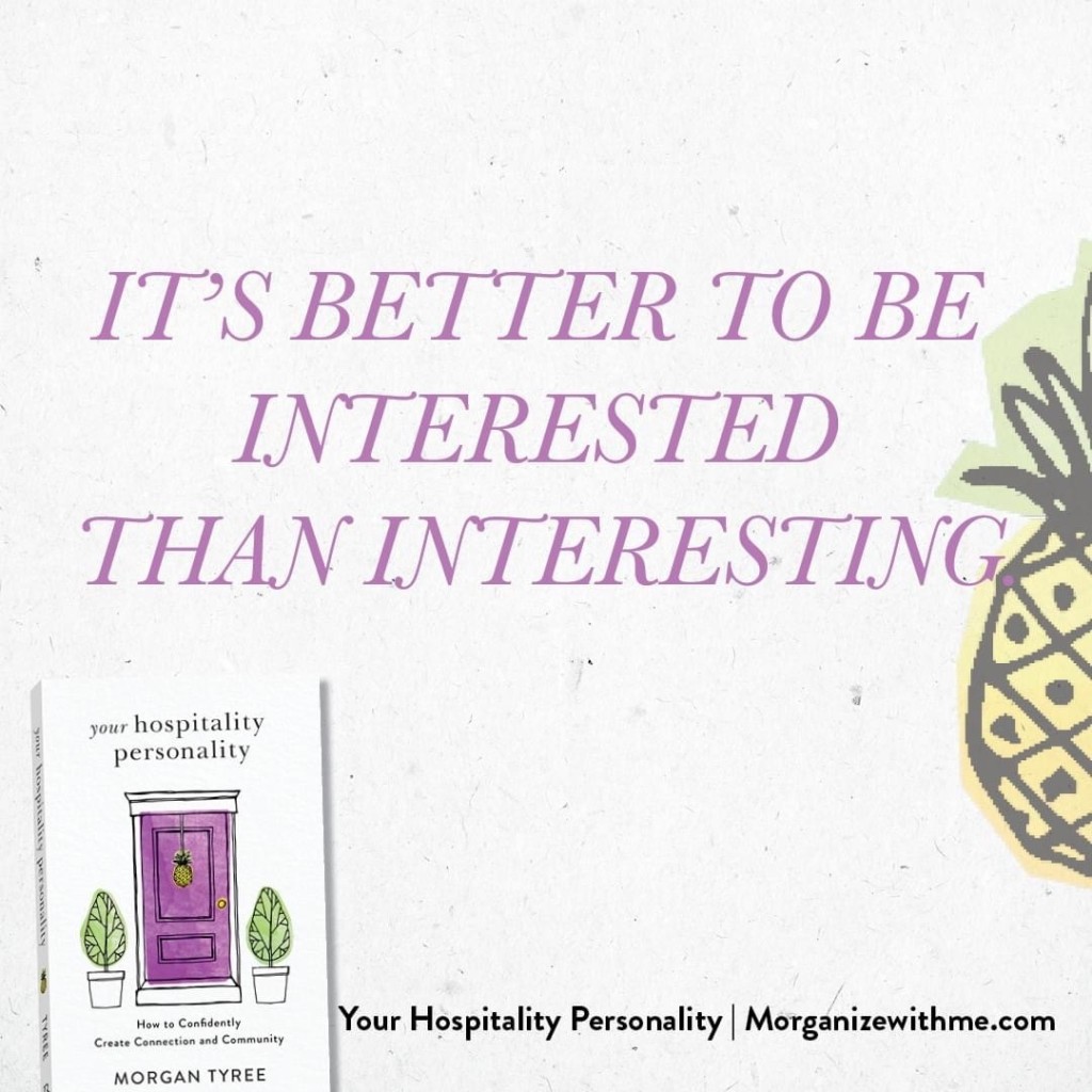 Morgan also writes about the importance of putting others before yourself in hospitality. One of my favorite quotes is “Be a there you are kind of person, not a here I am kind of person (Anne Ortlund), and Morgan emphasizes that you can do this in a way that is comfortable for you.