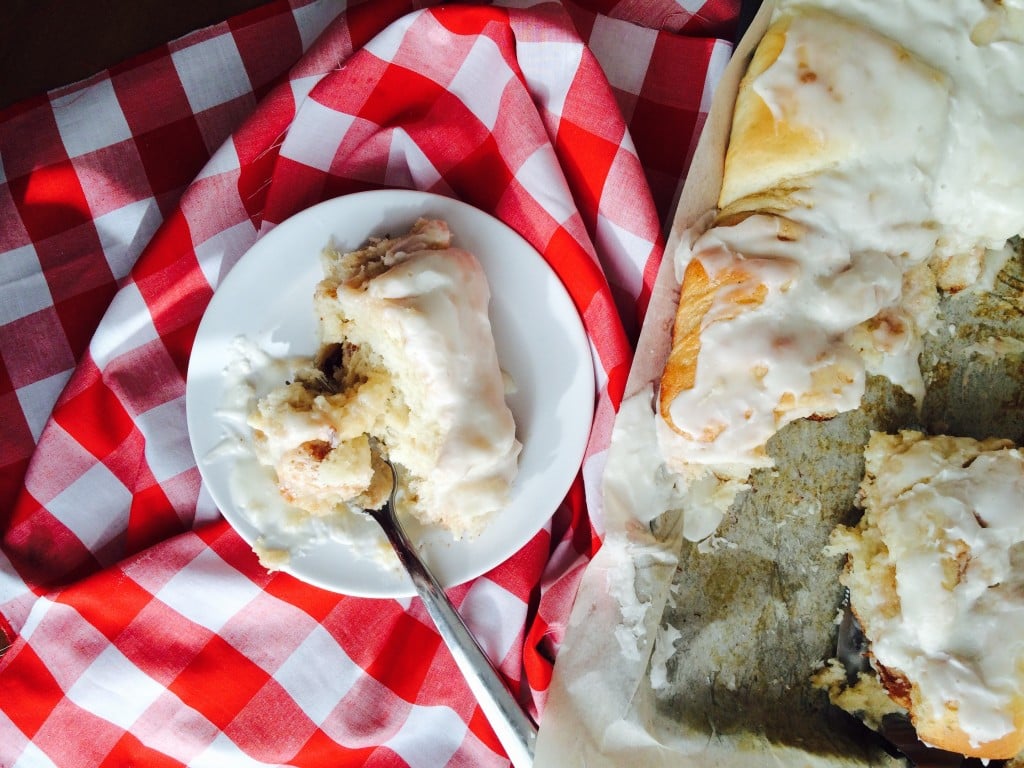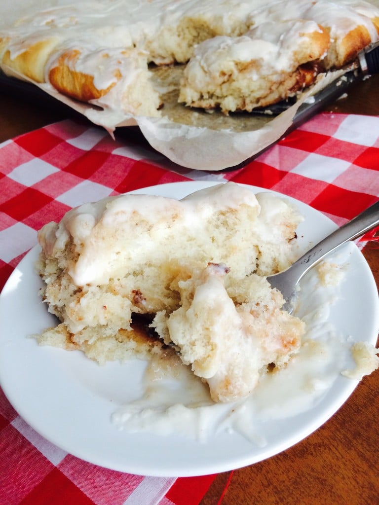 My Dad is one of seven siblings, needless to say our family holidays on his side of the family are huge…..I have over 20 first cousins. When I think of holidays at my grandparents house these three things come to mind – beef and homemade noodles, homemade dinner rolls and homemade cinnamon rolls….pans and pans of delicious cinnamon rolls. Before I had a family of my own, I never thought about why we always had cinnamon rolls for dessert, then I had my own family and realized how much work cooking for a crowd was. Apparently, my Grandma is a wise woman, could you imagine the amount of pies 7 children, their spouses and kids would eat? It would be crazy to bake that many pies!! Instead, she made pans and pans of cinnamon rolls and no body cared because they were so delicious!