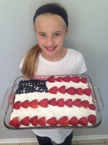Use homemade whipped cream or Cool-whip to top this patriotic cake. My kids especially love to help with this one.