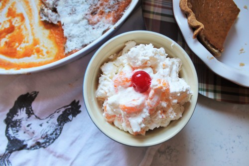 Thanksgiving Day is just around the corner. This is another side salad that is simple and easy, but also refreshing and light. This fluffy fruit salad has always been a tradition for us over the years. After some tweaking, we now add coconut (which my husband loves), and throw in a few maraschino cherries to give it extra flavor and color. Enjoy! Kids love it, and adults do, too. We enjoy this often for Thanksgiving, Christmas, and Easter.