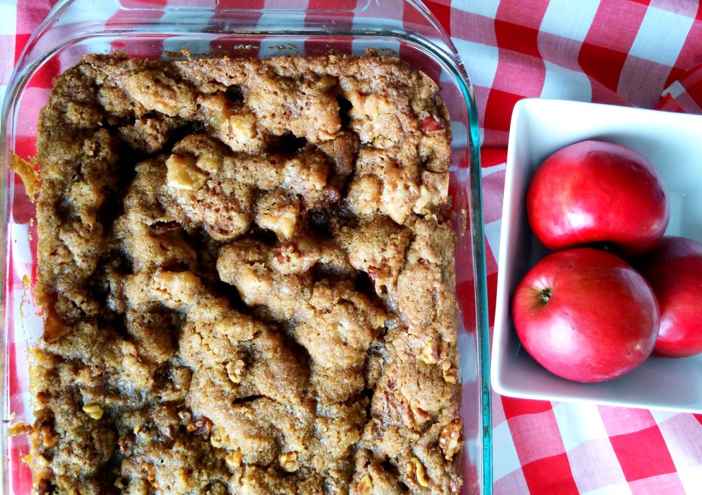 What three things come to mind when you think of Fall? For me, it is: Harvest, Pumpkins and Apples! Lots and lots of delicious apples, maybe even a fun trip to an orchard. My husband is not a fan of pumpkin food…it stems back to kindergarten when his teacher made him eat a sugar-free pumpkin bar. Ha! Since then, he has swore off anything pumpkin. So, for me instead of a house bursting with the smell of pumpkin during the fall months, we have the scent of apples and cinnamon, which I will gladly take. This apple cake recipe is my sister’s. She and her husband are extraordinary hosts, and this is on their hosting menu during the Fall months, so you can imagine how delicious it is!