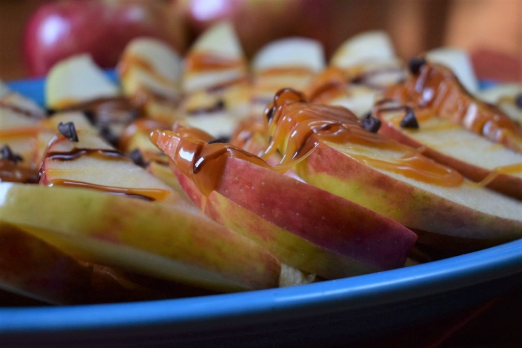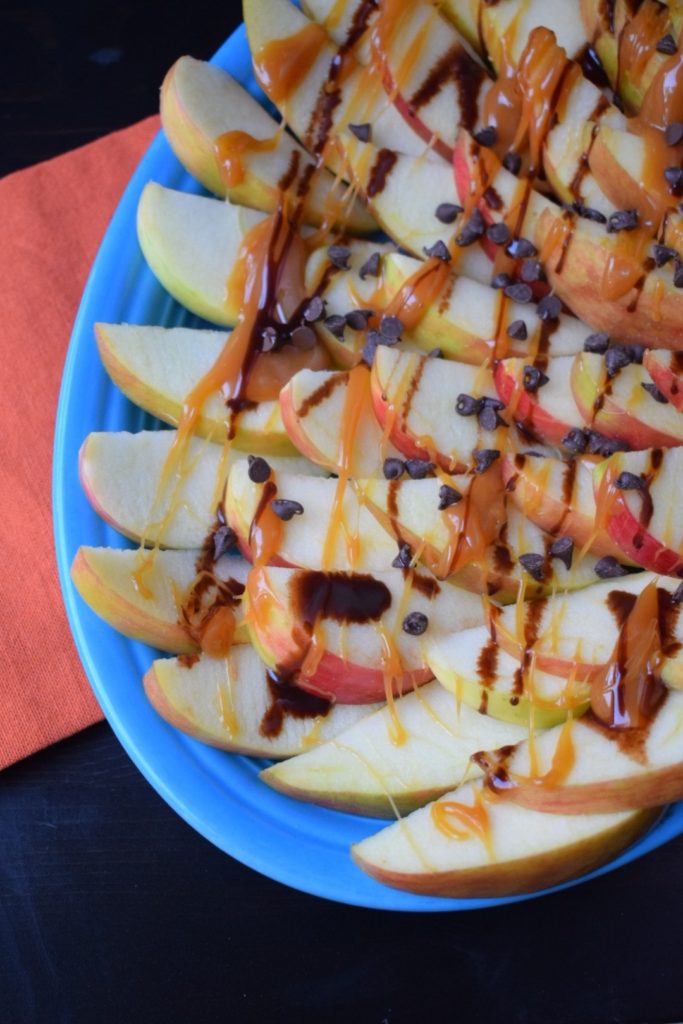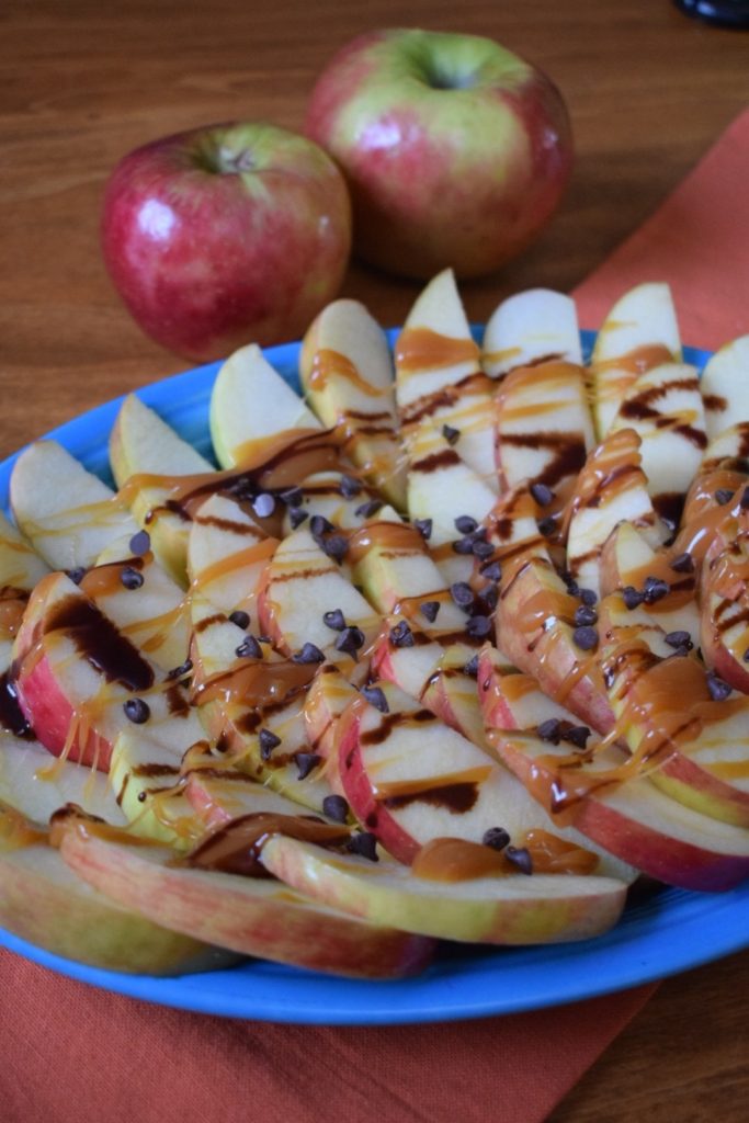 I love this treat because it has all the flavors of candied apples without the mess! Make it your own by sprinkling the apples with your family’s favorite toppings.