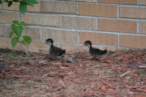 Come to find out, later the next day, when I posted some photos of the ducklings to my friends, one friend responded back and said they were wood ducks. Wood ducks like…..the woods! 🙂