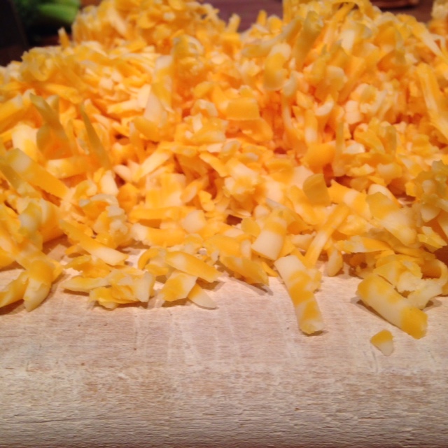 Use a heaping pile of your favorite shredded cheese. Mine is Colby Jack. Use this for making the homemade cheese sauce. Then add more for extra cheesy-ness! Why not, right?