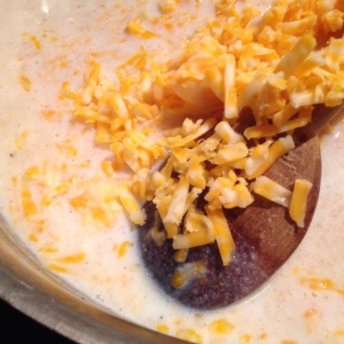 - Remove from heat, then add cheese and stir until melted and smooth.