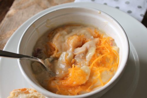 Soup sounds even better with a chill in the air, probably even tastes better too, right? Potato soup is comforting and fulfilling – and it hits the spot – every time. It’s simple to make. My favorite part of all is adding all the toppings at the end 🙂