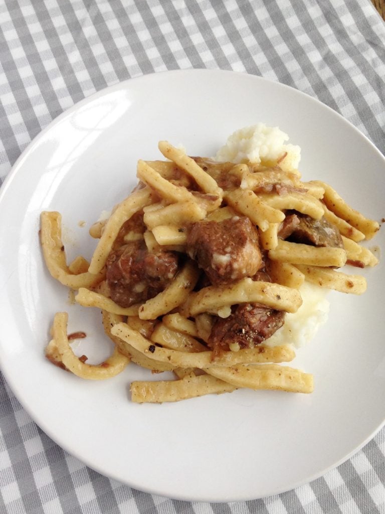 And speaking of Grandma Betty, I serve beef and noodles piled high on top of mashed potatoes. My favorite mashed potatoes are these: Grandma Betty’s Make Ahead Mashed Potatoes.