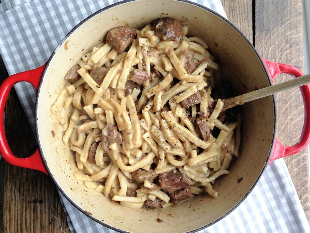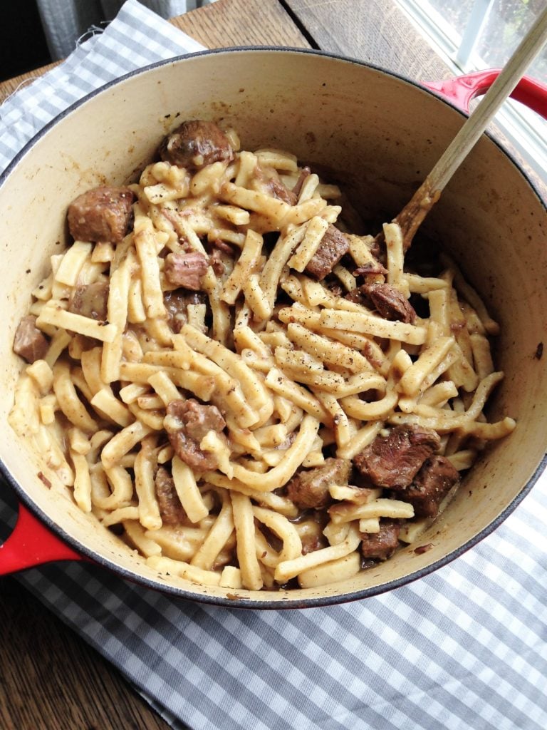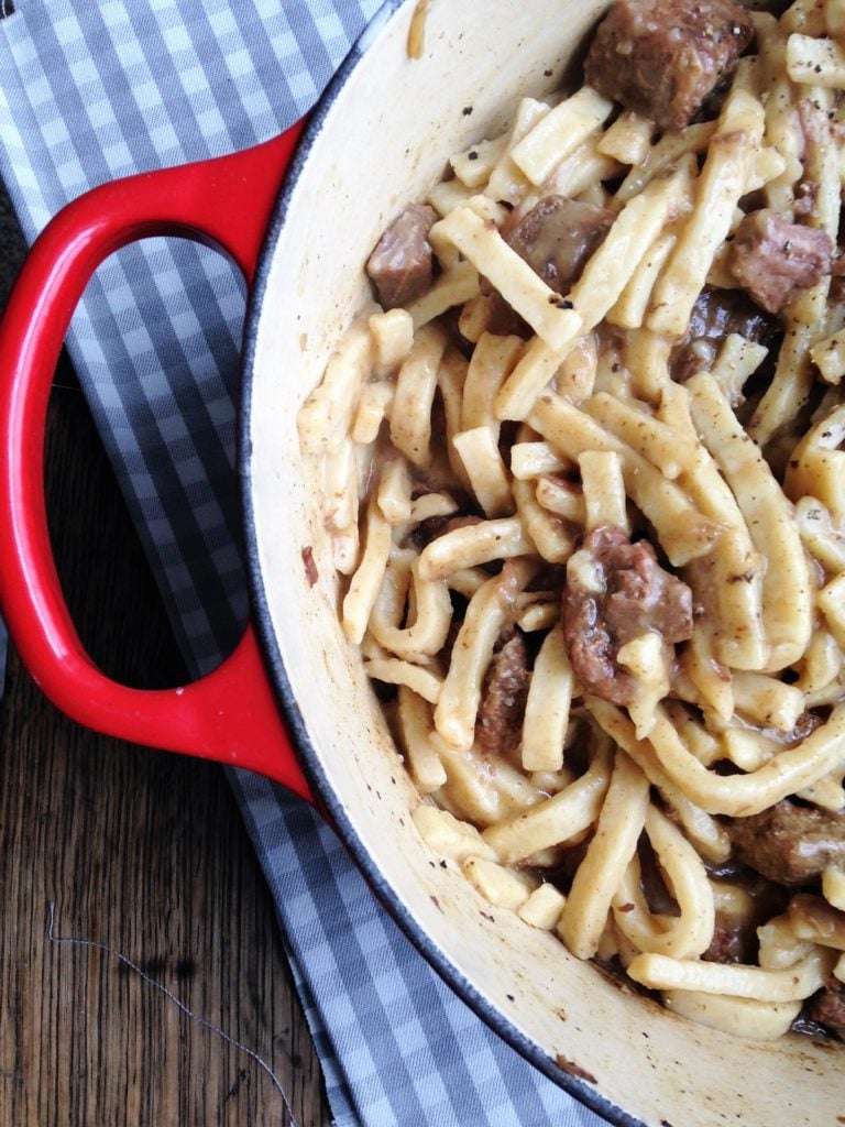 I have a very vivid memory of my Grandma Betty bringing me delicious beef and noodles a few days after I had our first baby. It was absolutely divine…. warm and delicious, and perfect when I was needing a little extra comforting. Just what I needed.