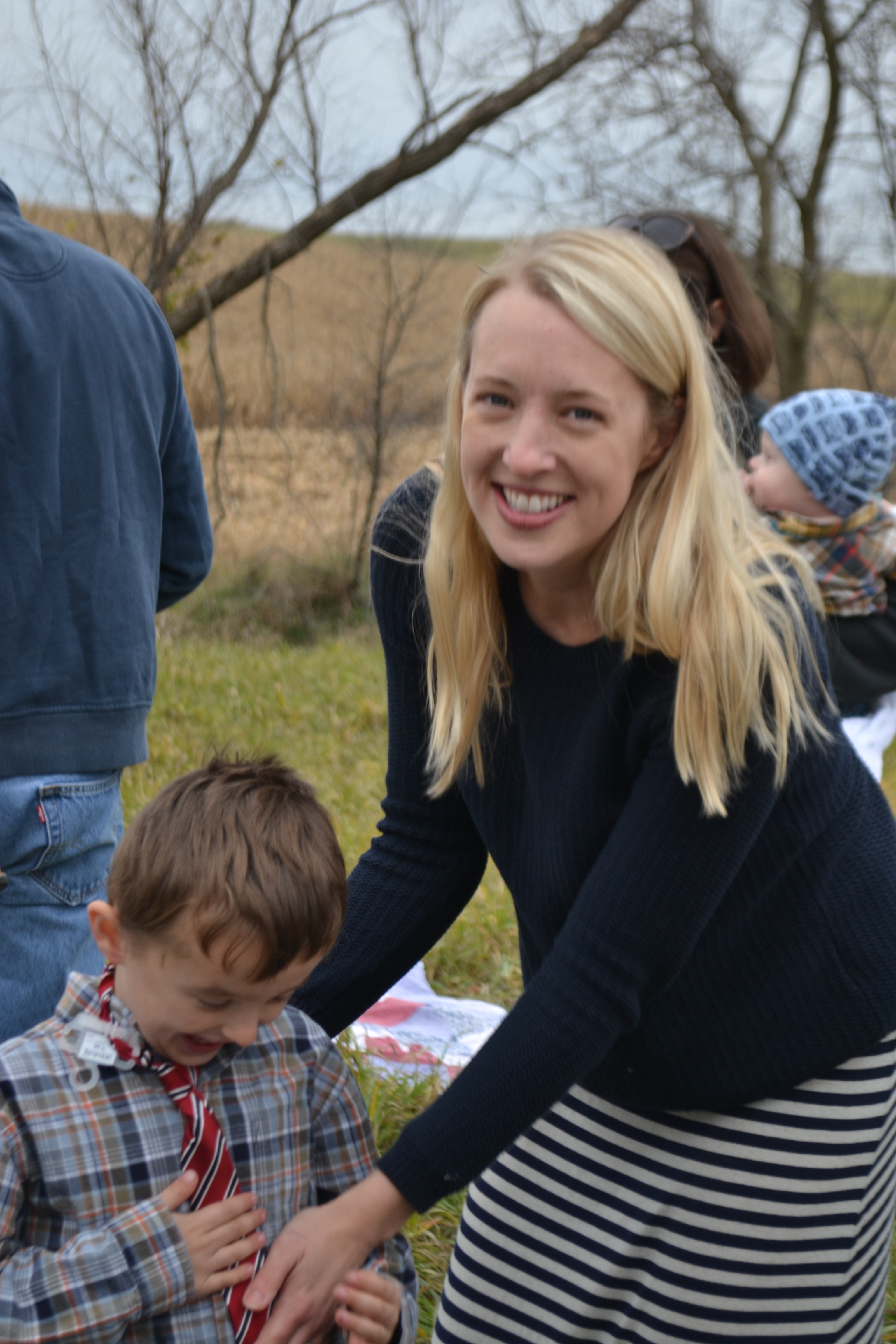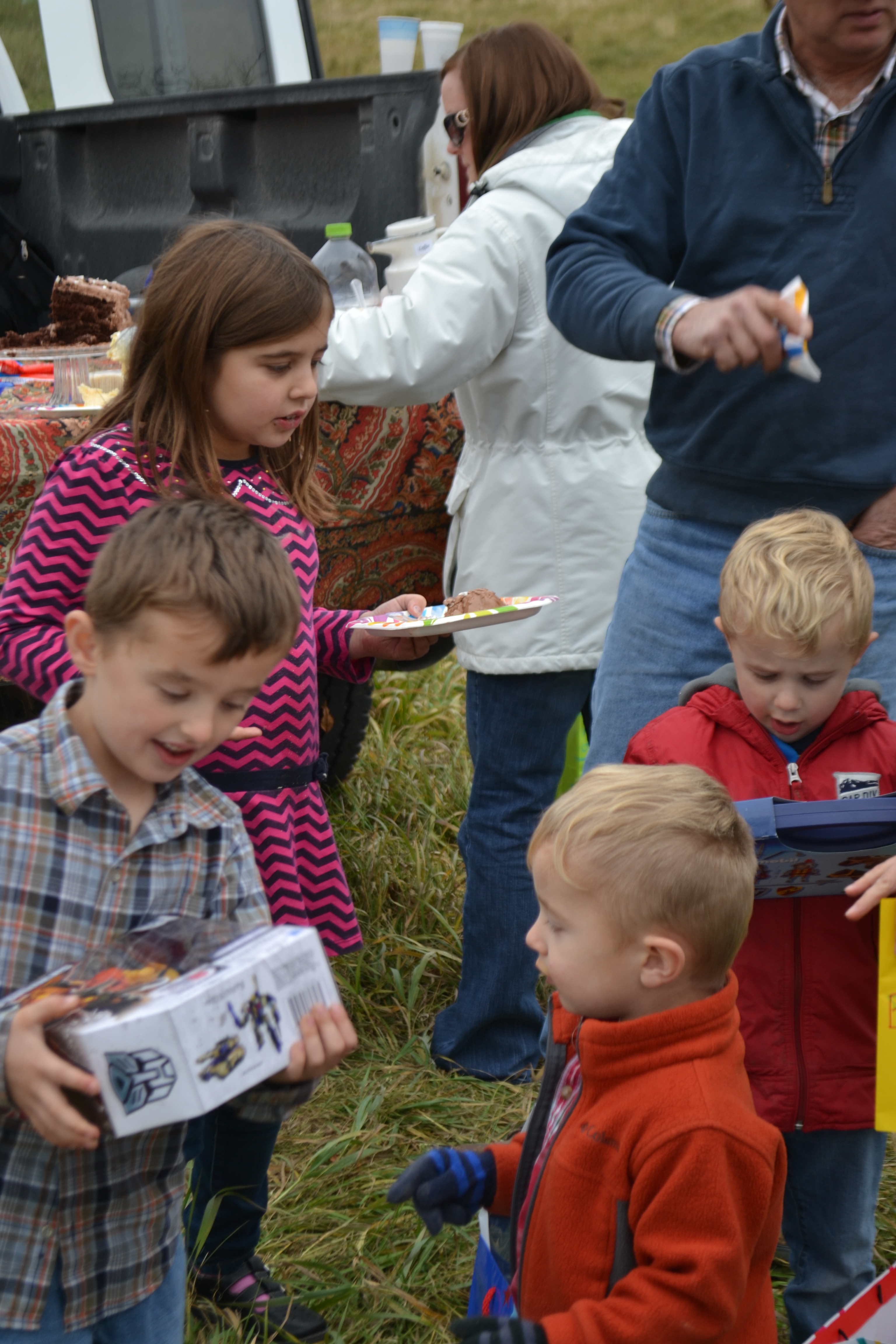 Family gatherings are so much fun for everyone. They are especially fun when someone is celebrated. Bennett’s birthday is the November birthday in the family. The Gingham Apron girls decide to take the birthday party to the cornfield where the men are busy harvesting. The clock is ticking and they want to get finished picking corn before Thanksgiving comes. Because of the wet weather and late start to the harvest, the men are forging ahead in high gear, even on the weekends this year. Bennett was certainly OK with having his party in the cornfield. In fact, he thought it was a great idea!