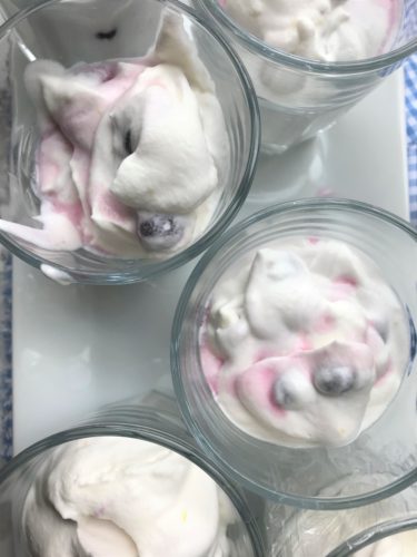 If you’re looking for a cool, refreshing dessert try out this Blueberry Fool. I often think of this treat with Spring or early Summer. It is light, creamy, and has a surprise of blueberries with lemon zest. It is great on a warm summer night or upcoming special occasion!
