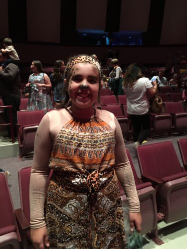 Jen and I took a quick trip to Southern California last week to watch Addison perform in the musical, The Lion King, put on by Christian Youth Theater, a nation-wide organization.We weren’t allowed to take pictures during the performance, but here are a few post-show pics. She was the cutest little cheetah I ever did see, with all the make-up and garb!
