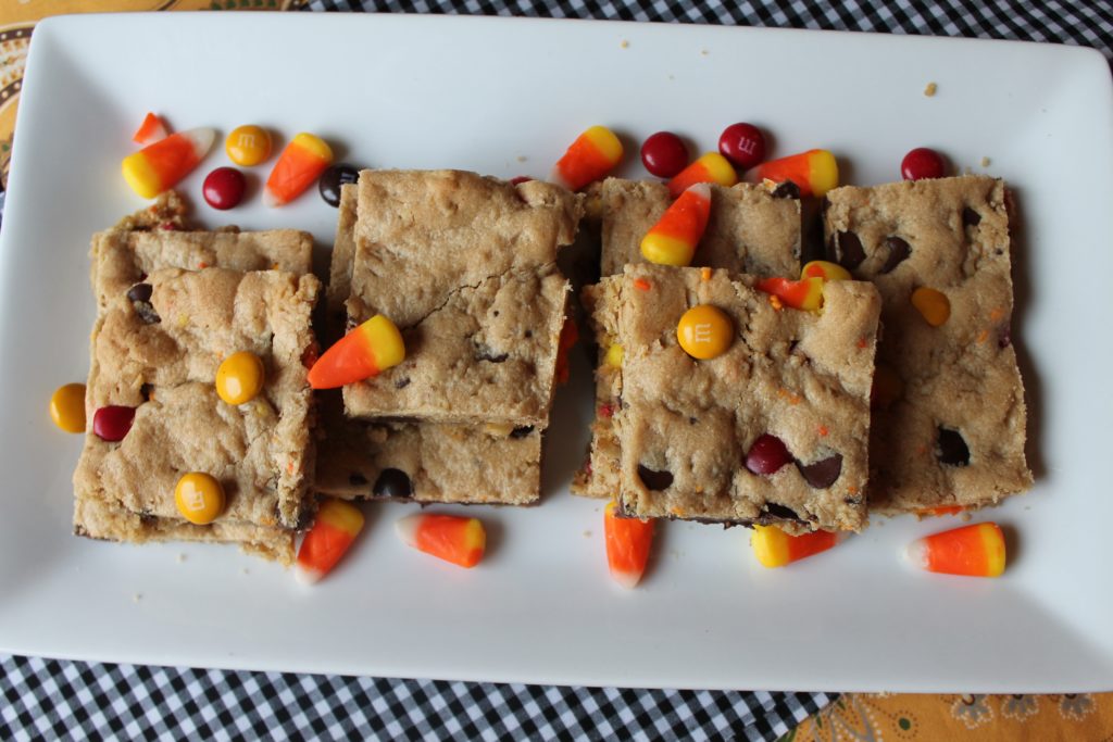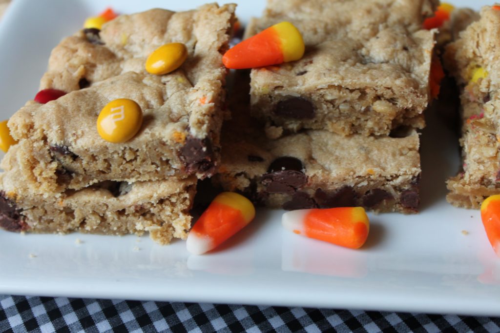 They are loaded with goodies like peanut butter, oatmeal, chocolate chips…and favorite fall candies like candy corn and m&m’s. Can you see why we like them? They are fun and festive – and they can be “added to” with 1/4 c. of goodies as desired. They pair perfectly with a tall glass of milk, and make for a great after school snack. Enjoy!