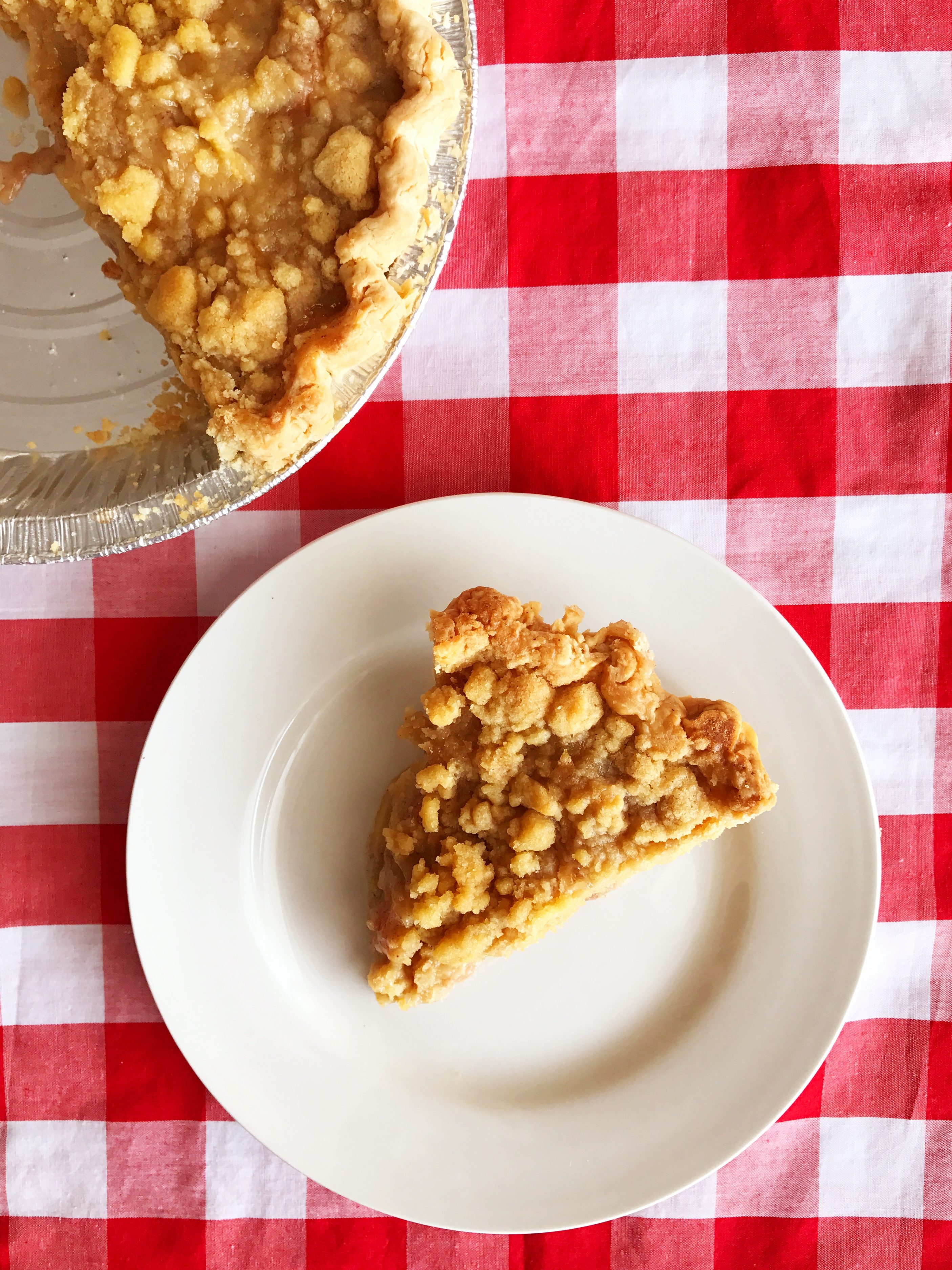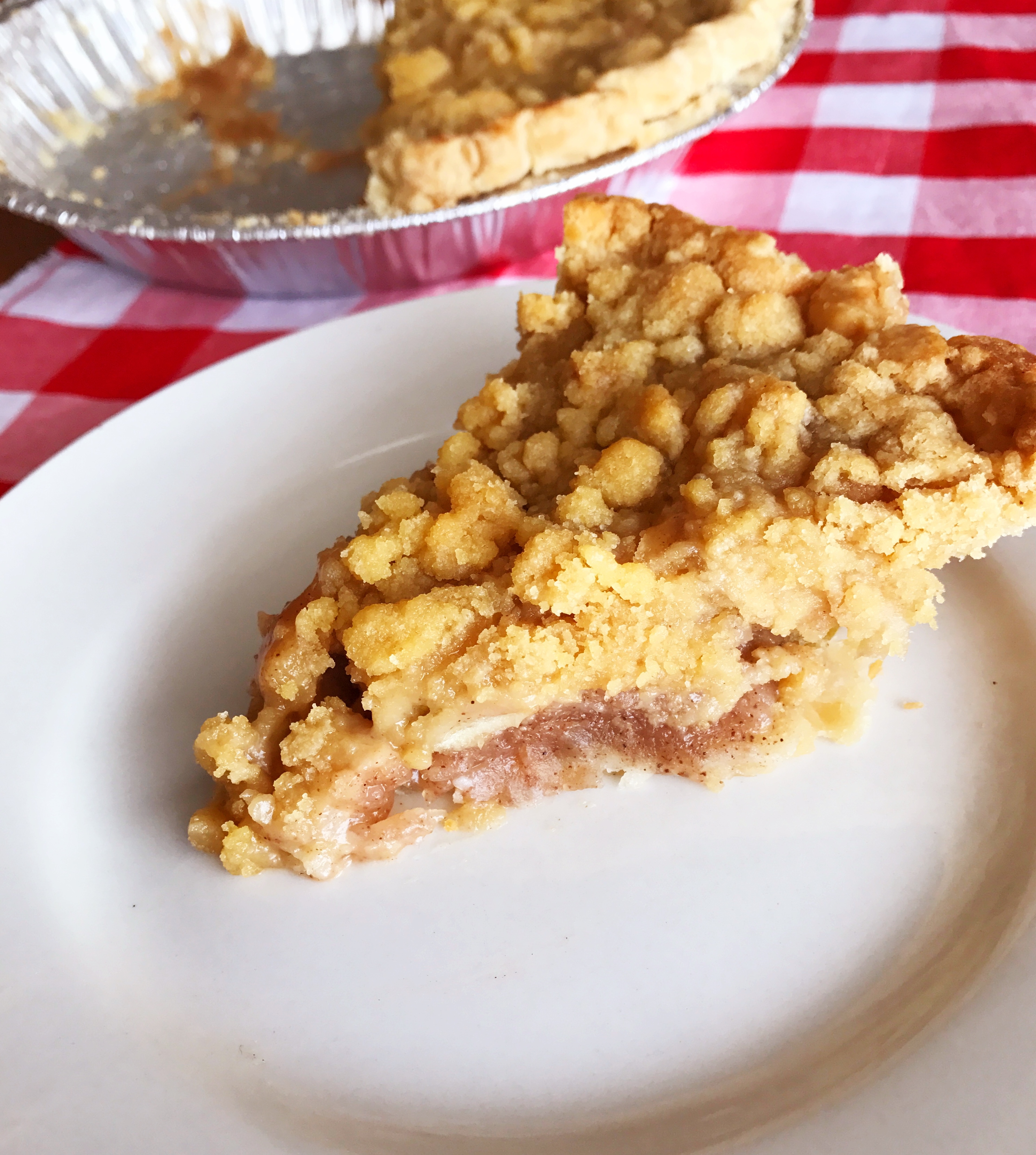 This pie has a delicious crumble top with caramel layered in it as well which makes it the best (in my opinion). A fun twist on the typical Dutch apple pie. Delicious!