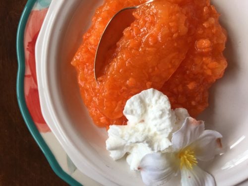 My mother-in-law didn’t have a fancy food processor. She would always clamp her meat grinder onto an old chair or board to grind the carrots. Wish I had a picture to show you. Actually, I have to say I desire the texture of her carrots over mine.
