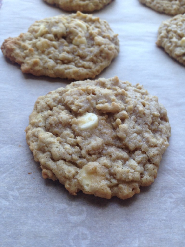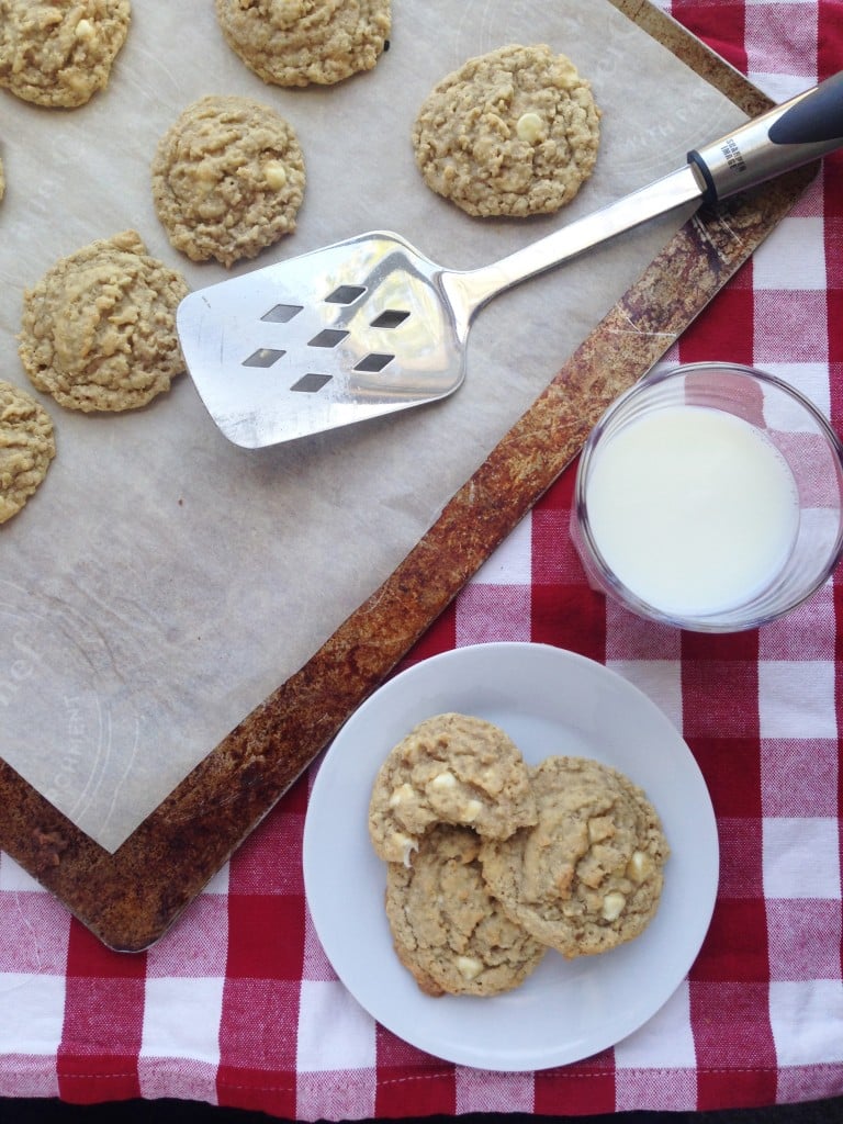 These cookies are the perfect combination of crispiness on the outside and chewiness on the inside. They are my current sweet addiction – not to mention the ingredients of butter, oatmeal, coconut, brown sugar, and white chocolate chips. They remind me a lot of ‘blondies’ except they are the cookie version.