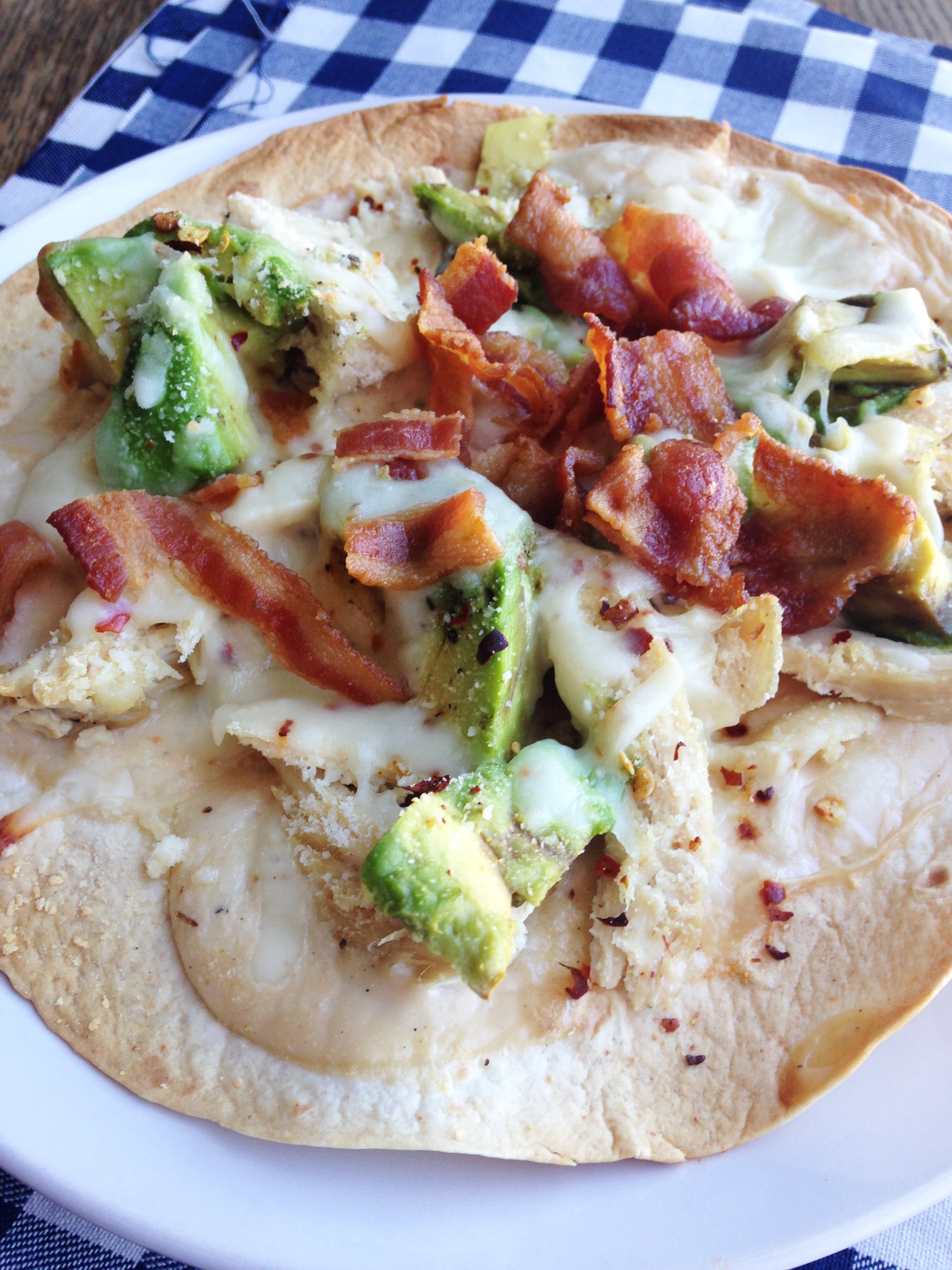 Chicken, Bacon, and Avocado Thin Crust Pizza