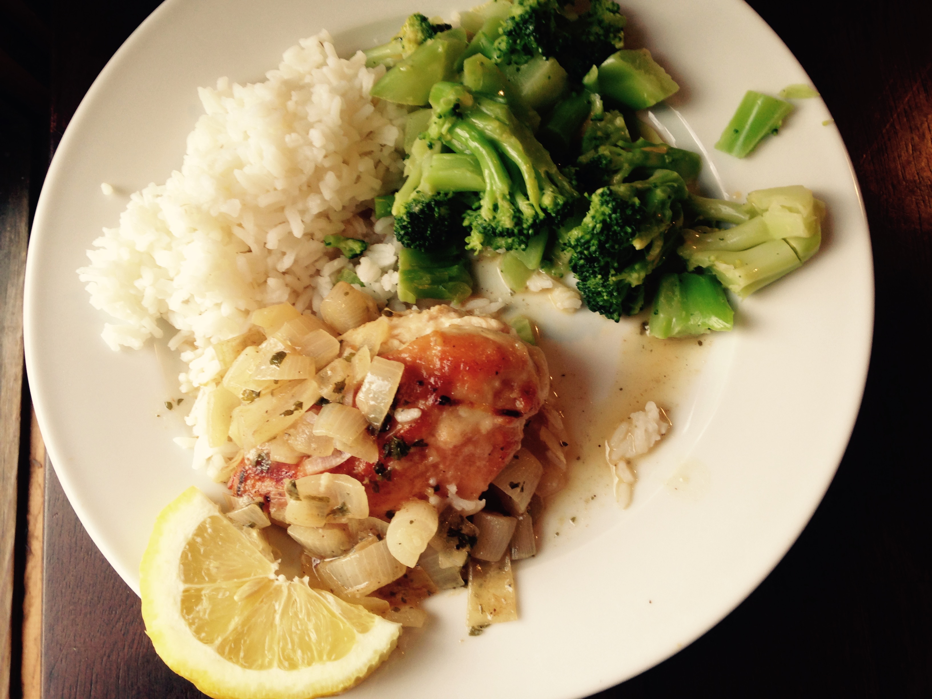 I like to serve this dish with rice and a vegetable. This is a nice light dinner and might be great while sitting outside enjoying the colorful sunset.