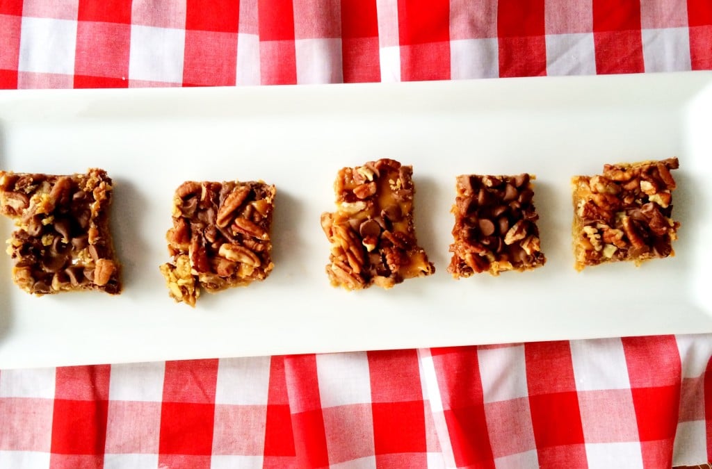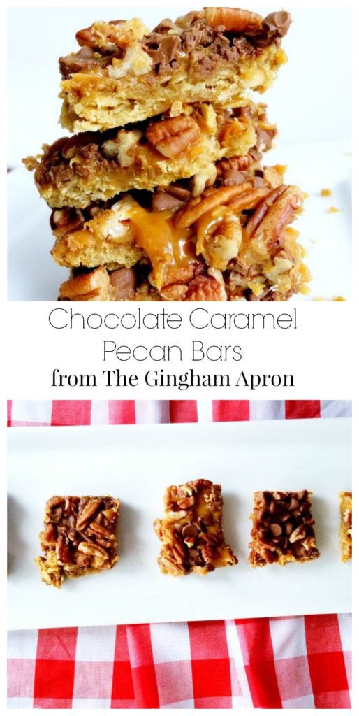 I am going to try to get through this post without drooling. Theses bars are hands down my favorite! However, I rarely make them…why, you ask? Well, because I will eat the entire pan myself…I won’t even apologize about it, they are that good. (ha) But really, this recipe is delicious and came from my Aunt Linda. She is such a sweet lady, and I couldn’t ask for a better Aunt. She knows these are my favorite and has blessed me (or maybe cursed me) with delivering an entire pan after each of my babies were born. The struggle was real those weeks. Baby weight off or chocolate caramel pecan bars in? (sigh)