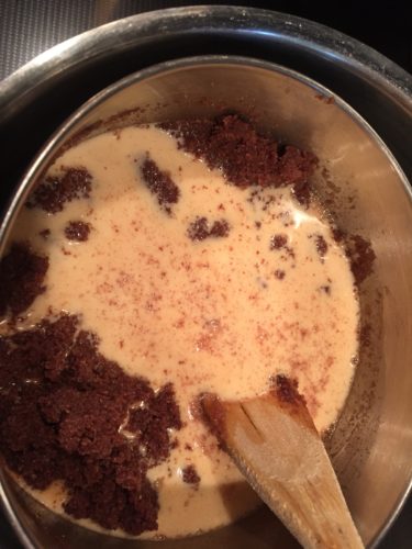 Love having a well-stocked pantry. (Doesn’t always happen around here!) So when the “chocolate bug” hits, I’m prepared. In this case, the chocolate baking bar and evaporated milk have long shelf lives. Those are 2 items that should always be in the pantry for baking and cooking. I load up on butter whenever it is on sale–sometimes sticking packages in the freezer for times such as this. 🙂 Vanilla–that mysterious liquid flavoring that comes from far away….well….just have to have it. Do have to wonder how long American cooks have had it on their pantry shelf.