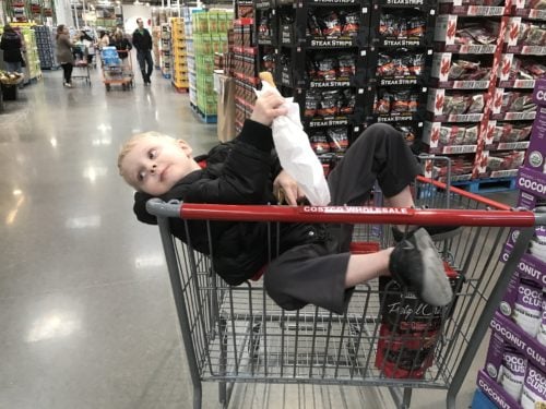 We love all things cinnamon and sugar at my house. Possibly my youngest kiddos favorite dessert is a “Cheer-O” from “the warehouse”. Otherwise known as a churro from Costco. My little buddy and I have a pretty good system worked out. We walk into Costco through the exit doors, buy a “Cheer-O” and then he proceeds to settle in with his treat while I walk around and accomplish a little shopping. Look at that little guy below. 😉