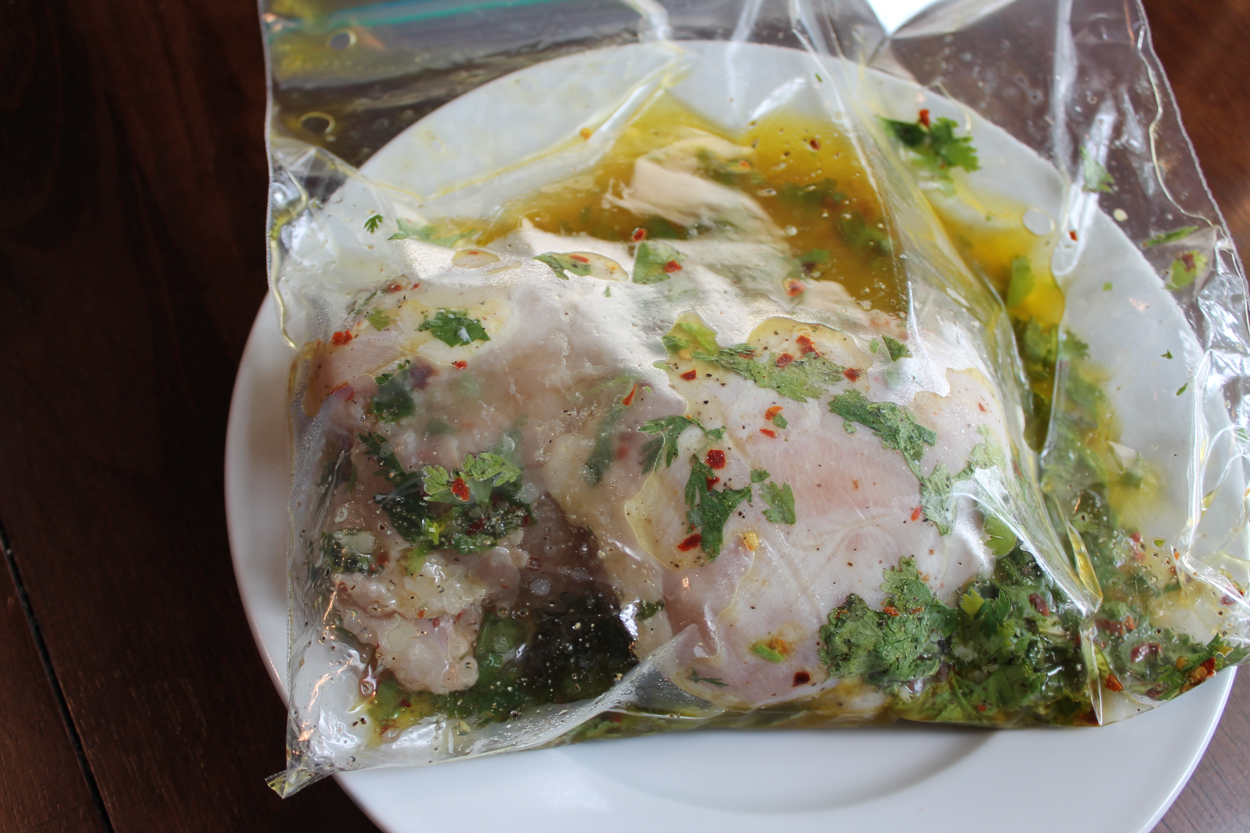 - Mix above marinade ingredients together and pour over chicken in a zipper-sealed bag.