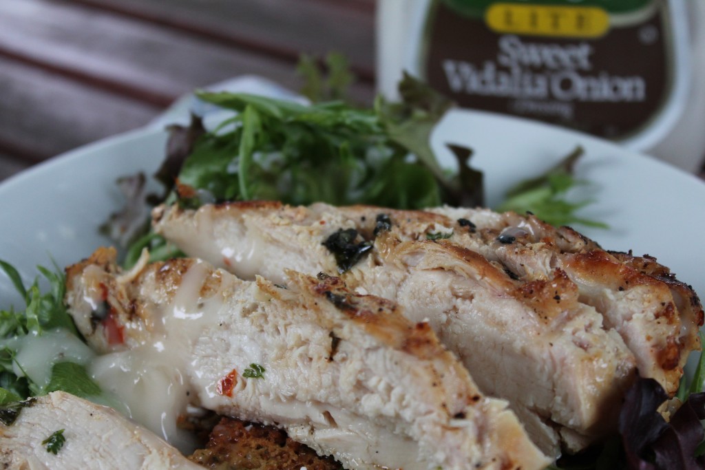 We enjoy this with on top of a salad – paired with our favorite dressing (right now mine is Ken’s Sweet Vidalia dressing) or it can be easily served with rice or pasta. It’s a no fail recipe, and can go with just about anything. My daughter loves this chicken with her favorite dressing – Hidden Valley Ranch, of course. 😉