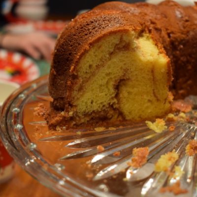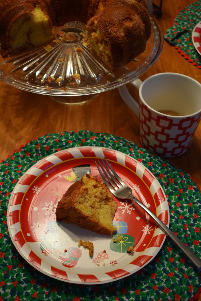 So I get to relax and enjoy every second of Christmas and we all get to enjoy this scrumptious holiday favorite. This cake truly the best! The sour cream and pudding make it so decadent and the cinnamon and sugar make it taste like Christmas.