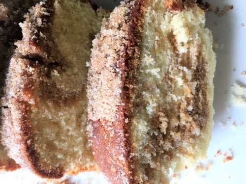 Here’s another favorite butter, sugar, cinnamon combination that makes for a sweet treat. This cake-like bread hits the spot for a morning coffee or lazy Saturday. The cinnamon is swirled within the bread and then also used on top for a final coating of cinnamon-sugariness! Can you tell I have a sweet tooth?