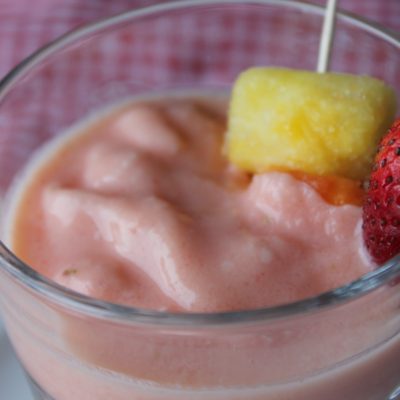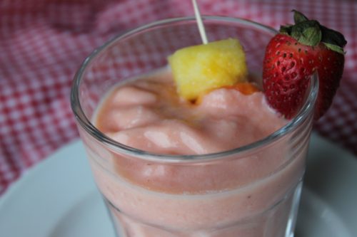 - 1½ - 2 c. tropical fruit ( I used frozen strawberries, pineapple, and papaya)