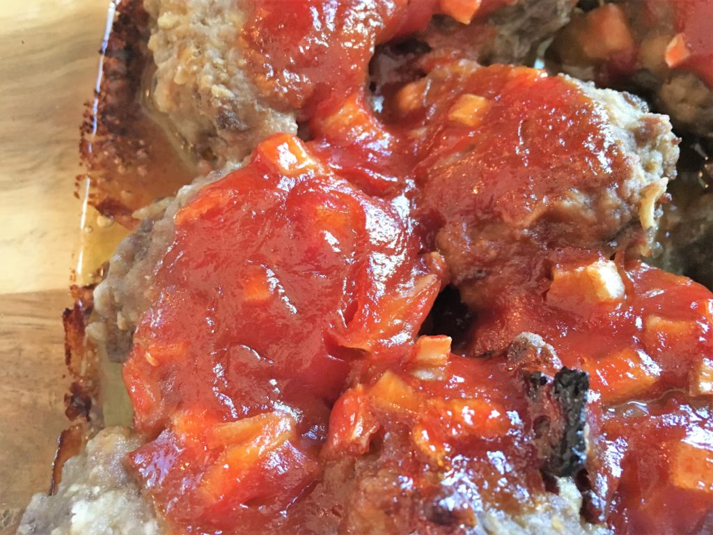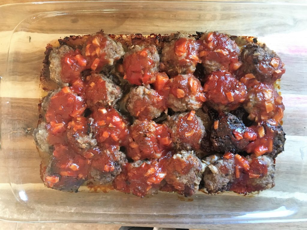 Wondering what to do with that package of ground beef? This recipe is SO good. It comes originally from Ree Drummond (aka The Pioneer Woman). It can be dished up as “finger food”- appetizers – or a main dish. I’ve done both. It is could be considered a spinoff of meatloaf, made into these cute little meatballs. There are a couple additional steps to this recipe (like browning) for a few minutes, and then baking later. 🙂 Yes, that’s one of the reasons these are so good! They also have secret ingredients like oatmeal, lots of minced onion, Worcestershire, and Tabasco. They make for a quick and easy freezer meal, too!