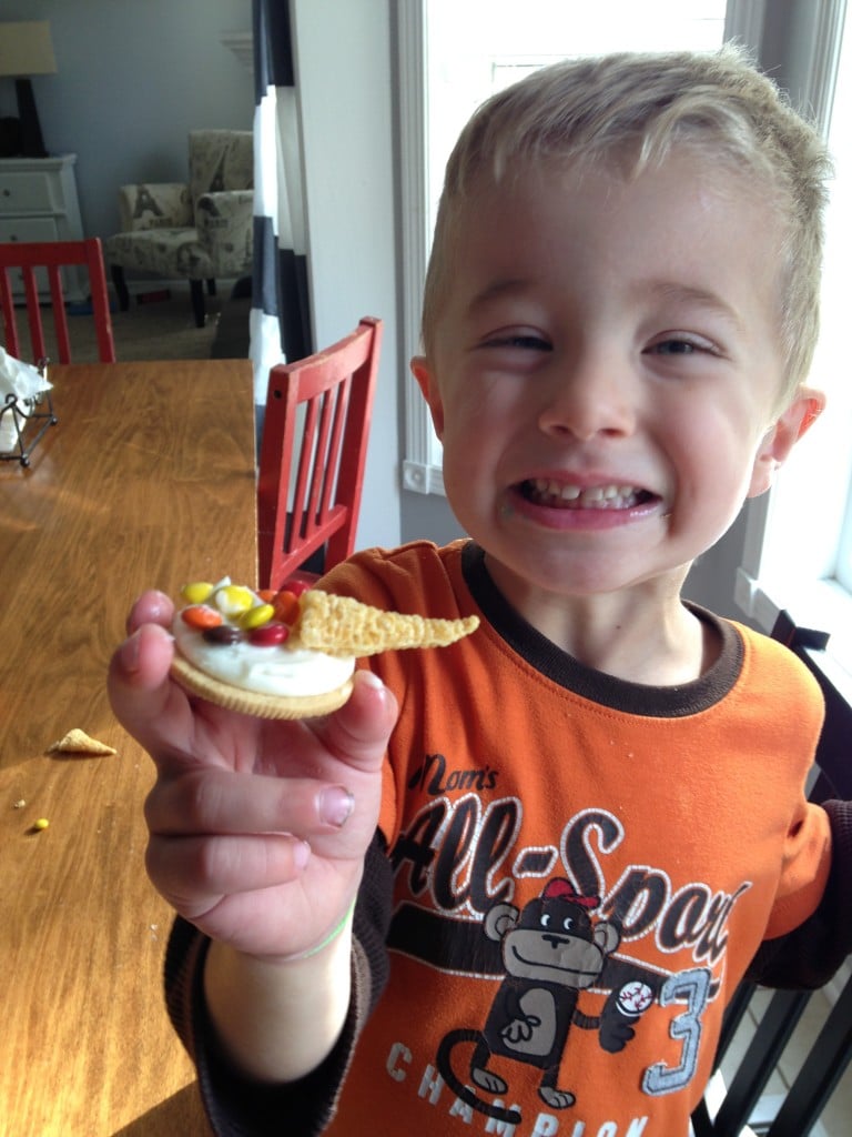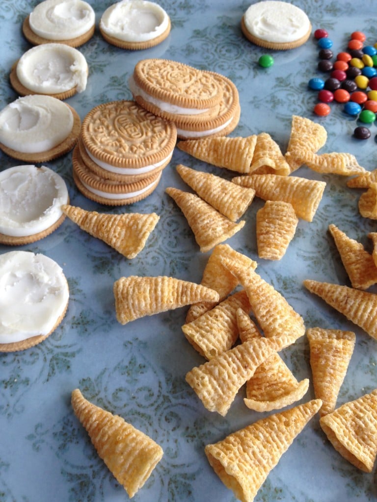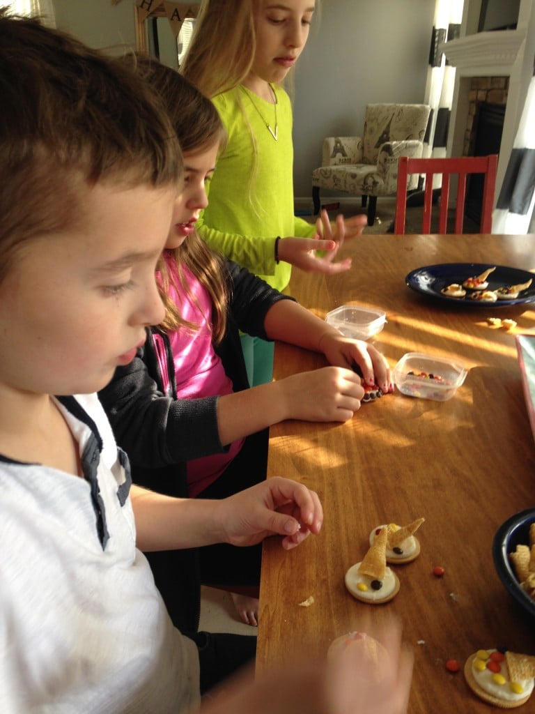 All you need are some Golden Oreos, some Bugels, and some Mini-M & M’s. Gather these ingredients and your favorite kids and have a great time making these! Then, share with one another some thing for which you are thankful for right now.